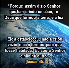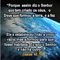 “Os céus anunciam a sua justiça, e todos os povos vêem a sua glória.” (Salmos 97:6) “Porque as suas coisas invisíveis, desde a criação do mundo, tanto o seu eterno poder, como a sua divindade, se entendem, e claramente se vêem pelas coisas que estão criadas, para que eles fiquem inescusáveis.” (Romanos 1:20) “E de um só fez toda a geração dos homens, para habitar sobre toda a face da terra, determinando os tempos já dantes ordenados, e os limites da sua habitação; para que buscassem ao Senhor, se porventura, tateando, o pudessem achar; ainda que não está longe de cada um de nós.” (Atos 17:26,27)